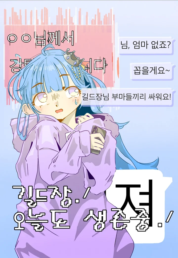 14살 여중생 정유진은 동갑 사촌이랑 채팅 게임의 공동 길드장이 되버리는데? "나랑 주차장에서 해볼래?" "아~길드장이 길드 관리를 더럽게 못하네" 멘탈도 약하고 말빨도 약한 유진이가 과연 어떻게 게임 속에서 살아갈 것인가?